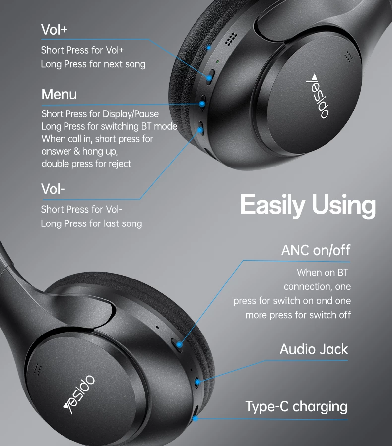 سماعة بلوتوث للرأس EP09 خاصية عزل الضجيج والضوضاء المحيطة من يوسيدو