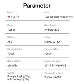 BT NAME: Yesido TWS38