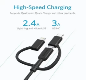 Anker 3 in 1 Cable Power Line II -3ft -Black -A8436H12